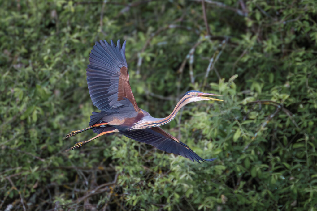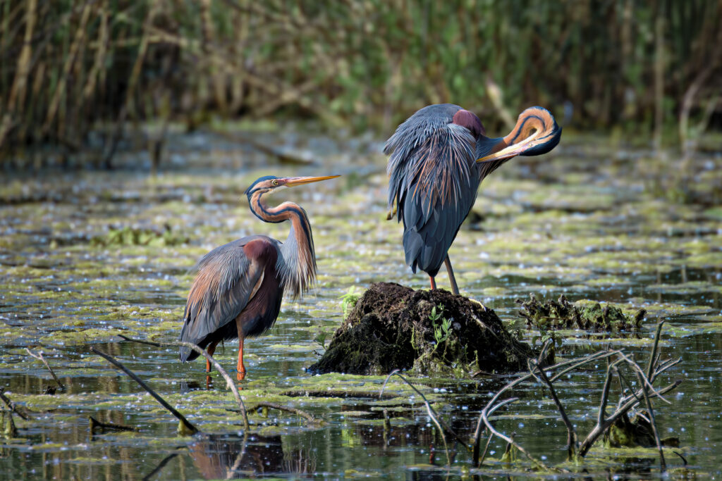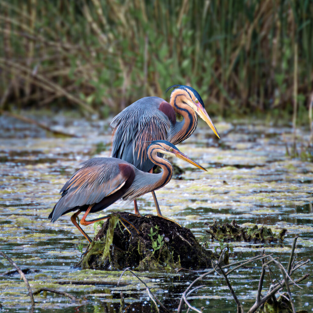 In den Schilf- und Röhrichtzonen finden Purpurreiher ideale Bedingungen zum Brüten und zur Nahrungssuche. Da sie ihre Nester auf leicht erhöhten Schilfinseln anlegen, können sie beim Nestbau und bei der Brutpflege häufig gut beobachtet werden. Mit Geduld und Rücksicht auf den empfindlichen Lebensraum lassen sich hier eindrucksvolle Aufnahmen dieses eleganten und farblich außergewöhnlichen Vogels machen.
